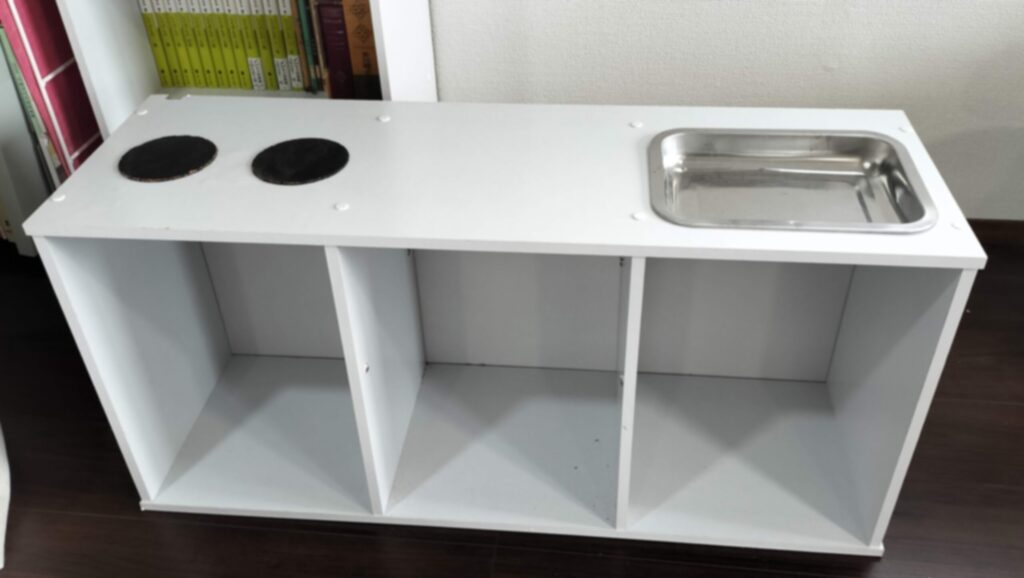 実は第1子が1〜2歳の頃、ままごと用のキッチンで遊んで欲しいと思い、自分で作ってみたことがありました。