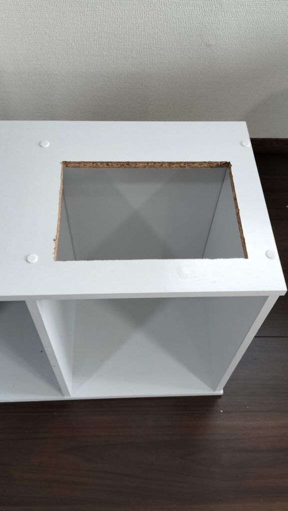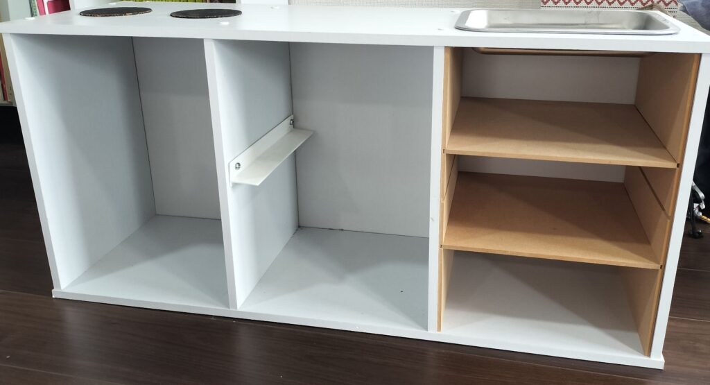 キッチン下部分に、ままごとキッチン道具を入れたいので、棚を作ります。